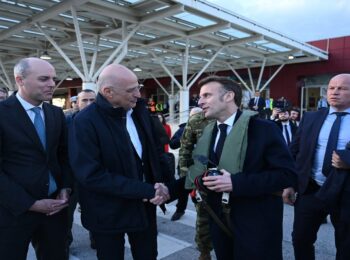 Επόμενος σταθμός η Σούδα μετά τη Κύπρο για τον Γάλλο Πρόεδρο – Τον υποδέχθηκε ο ΥΕΘΑ Νίκος Δένδιας