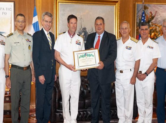 Με ομόφωνη απόφαση του ΣΑΓΕ, κατόπιν εισηγήσεως του Υπουργού Εθνικής Άμυνας Πάνου Καμμένου, απονεμήθηκε η Διαμνημόνευση Αστέρα Αξίας και Τιμής στον Αμερικανό Ακόλουθο Άμυνας (ΑΚΑΜ) στην…