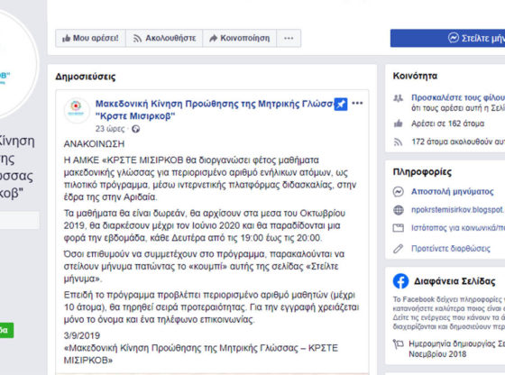 Ένα ακόμα αποτέλεσμα της κάκιστης Συμφωνίας των Πρεσπών. Η «Μακεδονική Κίνηση Προώθησης της Μητρικής Γλώσσας Κρστε Μισιρκοβ» ανακοίνωσε, στην σελίδα της στο «Facebook» ότι θα…