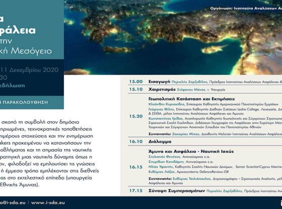 Το Ινστιτούτο Αναλύσεων Ασφάλειας και Άμυνας διοργανώνει και σας προσκαλεί σε μια Διαδικτυακή Ημερίδα με θέμα «Άμυνα και Ασφάλεια-Κρίση στην Ανατολική Μεσόγειο» που θα πραγματοποιηθεί…