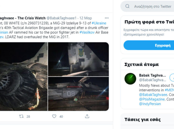 Σύμφωνα με ανάρτηση στο «Twitter», που συνοδεύεται από τις παρακάτω φωτογραφίες, του χρήστη «Babak Taghvaee-The Crisis Watch», το βράδυ της 10η Μαρτίου, μεθυσμένος αξιωματικός της…