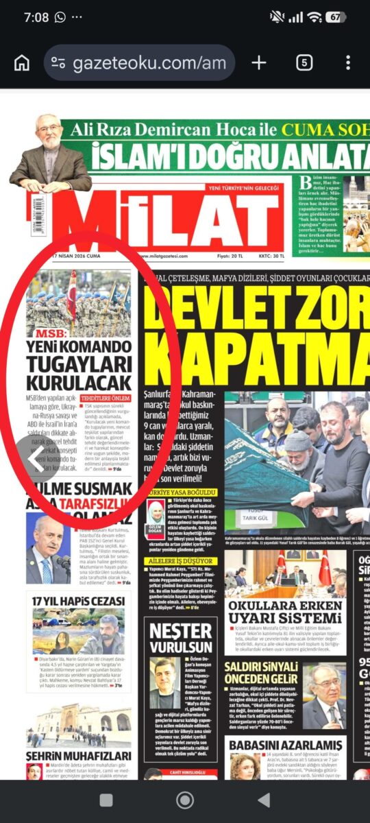 Η Τουρκία αλλάζει το Δόγμα και ιδρύει νέες Ταξιαρχίες Καταδρομών… Το είχαμε επισημάνει με βάση δήλωση συνεργάτη του Ερντογάν και το επιβεβαίωσε χθες και ο εκπρόσωπος του Υπουργείου Άμυνας της Τουρκίας. Η Τουρκία αλλάζει το Δόγμα με βάση τις εμπειρίες από τον πόλεμο στην Ουκρανία και το Ιράν και προχωρά σε ίδρυση νέων Ταξιαρχιών Καταδρομών. Σημειώνεται πως ο Τουρκικός Στρατός διαθέτει ήδη 18 Ταξιαρχίες Καταδρομών.
