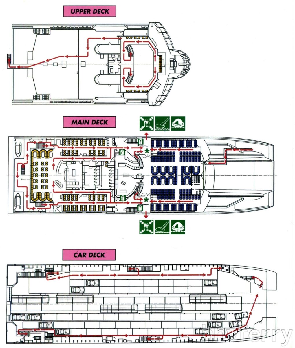 Το ολικό μήκος του πλοίου είναι 79,95 μέτρα και το μήκος της γάστρας είναι 78,6 μέτρα. Το ολικό πλάτος είναι 23 μέτρα, το κοίλο 7 μέτρα και το βύθισμα στο μέγιστο εκτόπισμα 3,4 μέτρα. Το μέγιστο εκτόπισμα ανέρχεται στους 4589 GT και έχει τη δυνατότητα μεταφοράς έως 575 επιβατών σε καθίσματα αεροπορικού τύπου και έως 150 αυτοκίνητα σε δύο καταστρώματα. Η φόρτωση/εκφόρτωση των οχημάτων γίνεται από δύο ράμπες μία στην πρύμνη και μία αναδιπλούμενη στην πλώρη, με αποτέλεσμα τα οχήματα να μπορούν να φορτωθούν από την πρύμνη και να εκφορτωθούν από την πλώρη. Το πλοίο χωρίζεται σε τρία κύρια καταστρώματα, το γκαράζ (Car deck), το κύριο κατάστρωμα και τη γέφυρα. Κάτω από το γκαράζ σε κάθε μία από τις γάστρες υπάρχει από ένα μηχανοστάσιο. Δεν διαθέτει καμπίνες για τους επιβάτες γιατί προοριζόταν για μικρής διάρκειας πλόες. Το πλήρωμα αποτελείται από 25 άτομα ενώ μπορεί να πλεύσει με ασφάλεια με πλήρωμα μόλις 16 ατόμων.