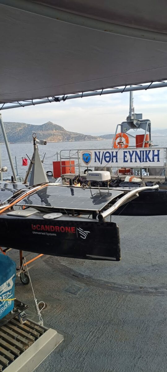 Στον τομέα της εναέριας επιτήρησης και ελαφράς κρούσης η Ucandrone ανέπτυξε στο πεδίο το Vtol UAS Aquila το οποίο εκτέλεσε αποστολές ISR με έμφαση στον εντοπισμό και την έγκαιρη προειδοποίηση για ασύμμετρες απειλές επιφανείας όπως εχθρικά σκάφη ειδικών επιχειρήσεων ή μη επανδρωμένα kamikaze ταχύπλοα τα οποία λόγο του μικρού τους μεγέθους δεν μπορεί να εντοπίσει έγκαιρα το πλοίο. Στη συνέχεια το Aquila συνεργάστηκε δικτυοκεντρικά με drones τύπου Mera τα οποία έφεραν mini κατευθυνόμενα Smag 40 και προσέβαλαν τις ασύμμετρες απειλές λαμβάνοντας δεδομένα στοχοποίησης από το Aquila. Εδώ πρέπει να τονίσουμε ότι και το Aquila μπορεί να φέρει τα συγκεκριμένα πυρομαχικά. Να τονίσουμε ότι το Aquila δεν είναι άγνωστο στο ΠΝ αφού αποτελεί εξέλιξη του UAS Αρχύτας το οποίο αναπτύχθηκε το 2020 και έκτοτε επιχειρεί από τα πλοία του Αρχηγείου Στόλου ΠΝ. Επίσης και το ελληνικής προέλευσης drone Mera υπάρχει στο οπλοστάσιο των ενόπλων δυνάμεων και συγκεκριμένα επιχειρεί από τα σκάφη Viking S1200 της Z’ ΜΑΚ της Διοίκησης Ειδικού Πολέμου του ΓΕΕΘΑ.