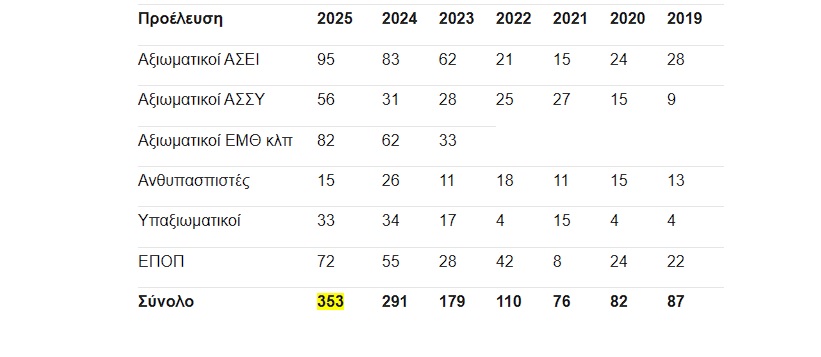 Ο ένας στους τέσσερις είναι αξιωματικός ΑΣΕΙ (95/353).
