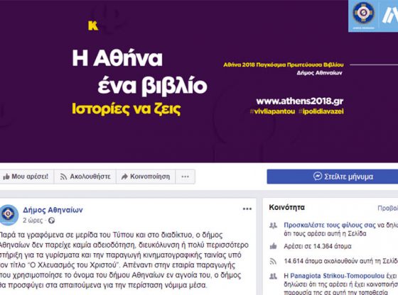 Με ανάρτηση του στο Facebook, ο Δήμος Αθηναίων διαψεύδει, με κατηγορηματικό τρόπο, ότι υποστηρίζει, με οποιονδήποτε τρόπο, την ανθελληνική ταινία «Ο Χλευασμός του Χριστού», παραγωγής…