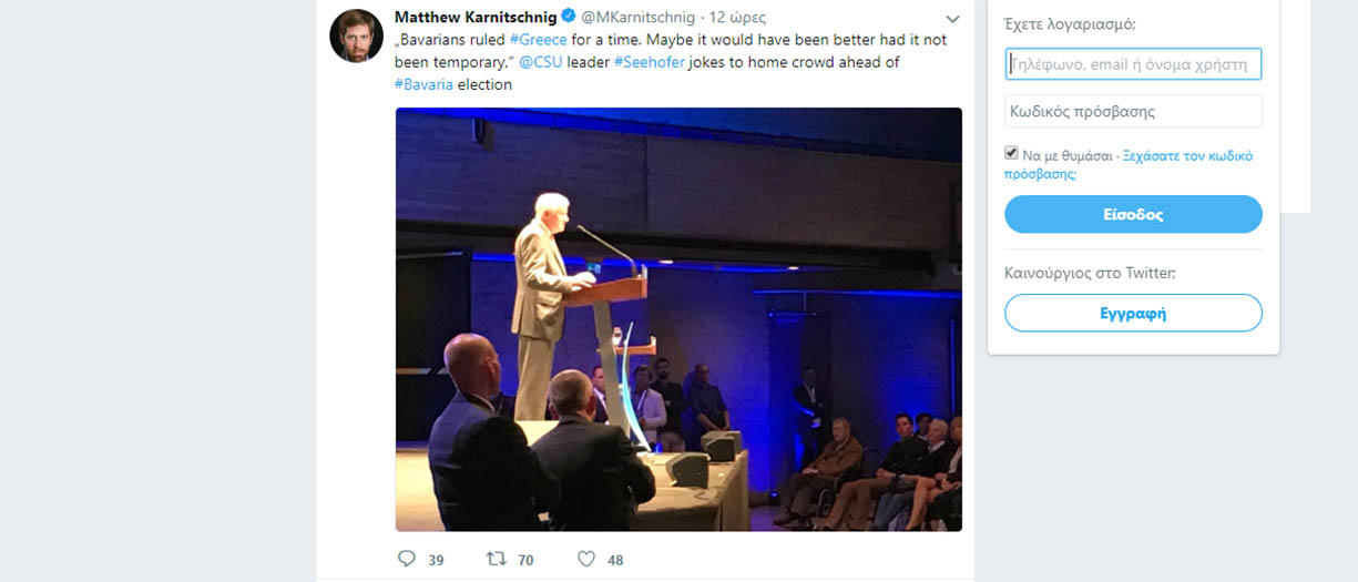Σε μια άκρως προσβλητική δήλωση για την Ελλάδα και τους Έλληνες προέβει ο Πρόεδρος του κόμματος Χριστιανική-Κοινωνικής Ένωσης της Βαυαρίας (CSU : Christlich-Soziale Union) και Υπουργός Εσωτερικών, Κατασκευών και Κοινοτήτων στην κυβέρνηση της Άγκελα Μέρκελ, Χορστ Ζεεχόφερ.