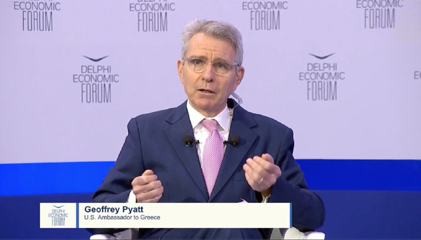 Ο κ. Pyatt είπε ότι η χώρα ανέκαμψε από μία δεκαετή και πλέον οικονομική κρίση με επιτυχία. «Κατά τη διάρκεια της θητείας μου εργάστηκα στενά με την κυβέρνηση των ΗΠΑ και της Ελλάδας στην προσπάθεια ανοικοδόμησης της χώρας στον τομέα της οικονομίας, της εξασφάλισης πολιτικής σταθερότητας, αλλά και στον τομέα της εξωτερικής πολιτικής», είπε. Και προσέθεσε ότι ειδικότερα στον τομέα της εξωτερικής πολιτικής έγιναν σημαντικά βήματα, όπως η Συμφωνία των Πρεσπών, η οποία τώρα στην ουκρανική κρίση έχει μεγάλη σημασία καθώς η Β. Μακεδονία είναι πλέον μέλος του ΝΑΤΟ. Ο κ. Pyatt τόνισε ότι «η Ελλάδα είναι στη σωστή πλευρά της ιστορίας και απολαμβάνει τη στήριξη των ΗΠΑ σε σημαντικά θέματα εξωτερικής πολιτικής, όπως η επιθετική ρητορική της Τουρκίας».