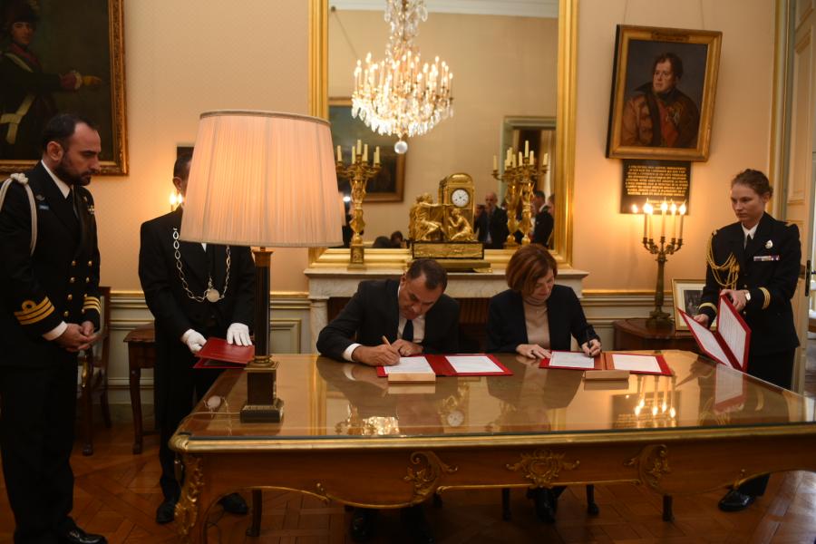 Τέλος, συζητήσαμε μια σειρά παρεμβάσεων, συνεργειών και συνεργασιών όσον αφορά στις πρωτοβουλίες και τα επίπεδα συνεργασίας, στο πλαίσιο της Ευρωπαϊκής Πολιτικής Άμυνας. Η Ελλάδα θα είναι παρούσα δίπλα στη Γαλλία, στις πρωτοβουλίες που αναλαμβάνει, ιδίως όσον αφορά στα Προγράμματα Ενισχυμένης Ναυτικής Εποπτείας στη Μεσόγειο και ιδιαίτερα στην Ανατολική Μεσόγειο, αλλά και σε άλλες εστίες έντασης.